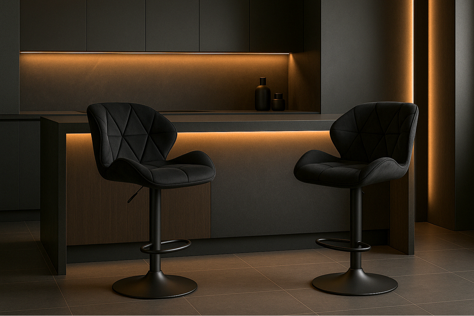 Ensemble – 2 chaises de bar en cuir au design sobre et matelassé – Stella