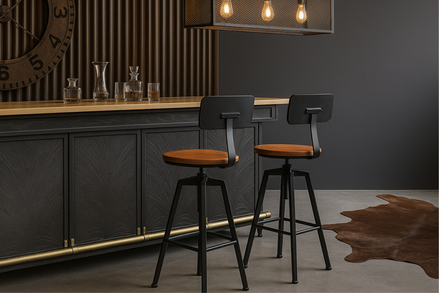 Ensemble – 2 chaises de bar au design galbé et cuir noir raffiné – Dray